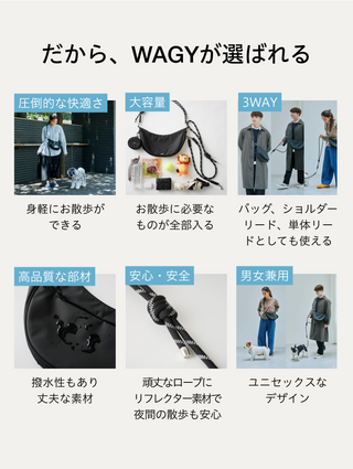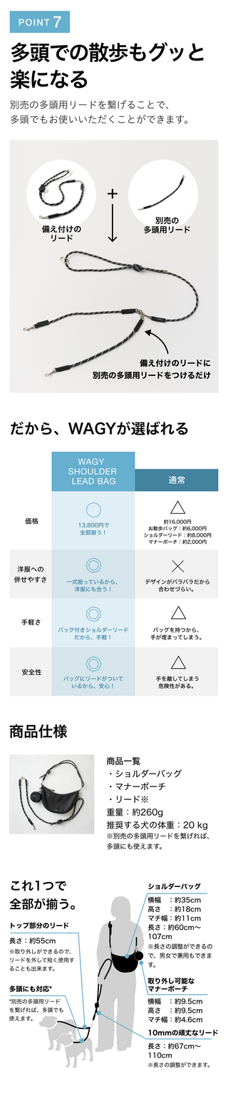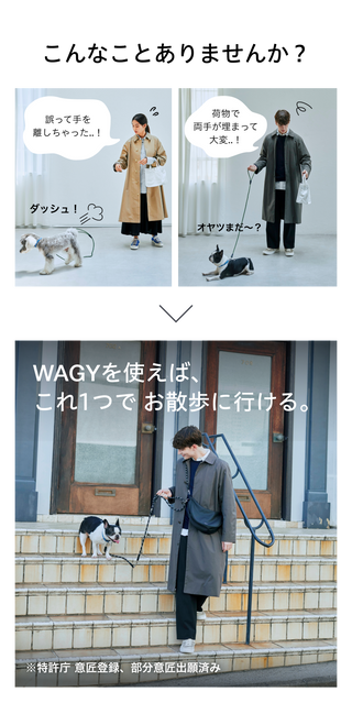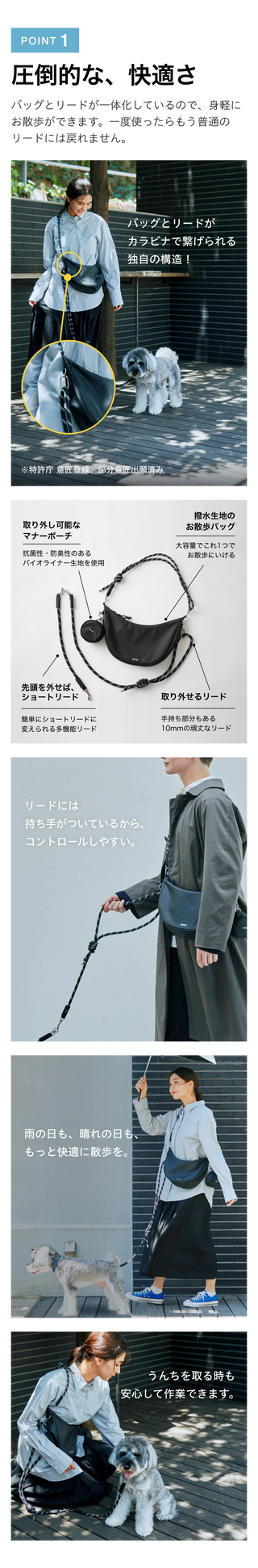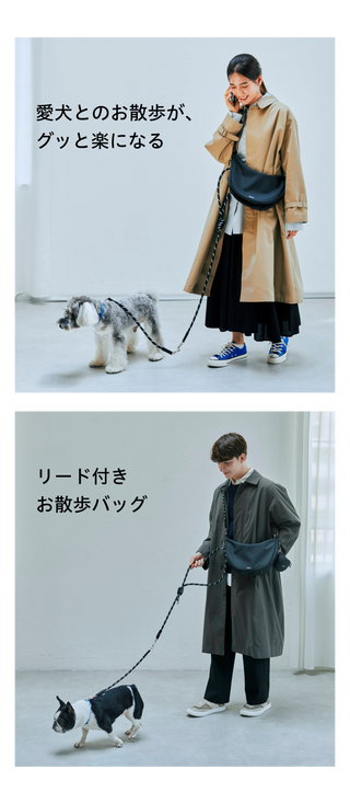 愛犬とのお散歩がもっと快適になるショルダーリード付きお散歩バッグです。リードとバッグが一体化した独自の設計で、これ1つで身軽にお出かけできます。(特許庁 意匠登録/部分意匠出願済み)